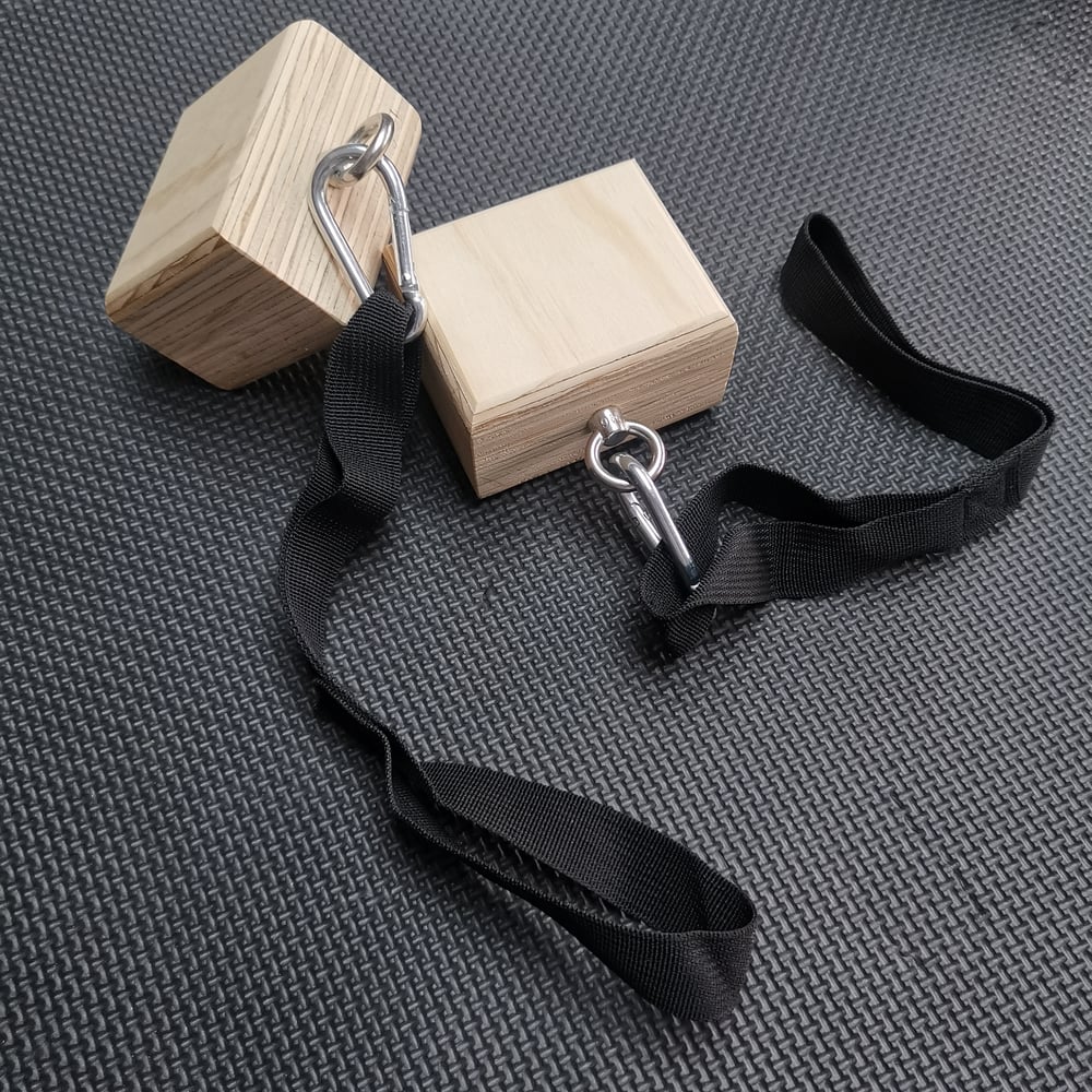 Pinch Grips focus on working the force between your fingers and your thumbs. Both all options are supplied with Stainless Steel Eyelets, snap hook karabiners and webbing loops for attaching to either fixed points or weights/kettlebells.